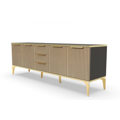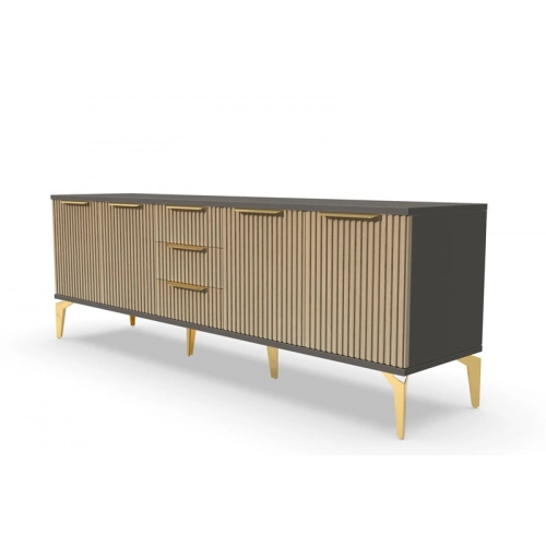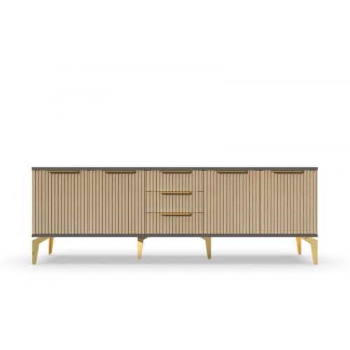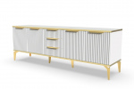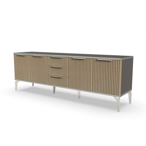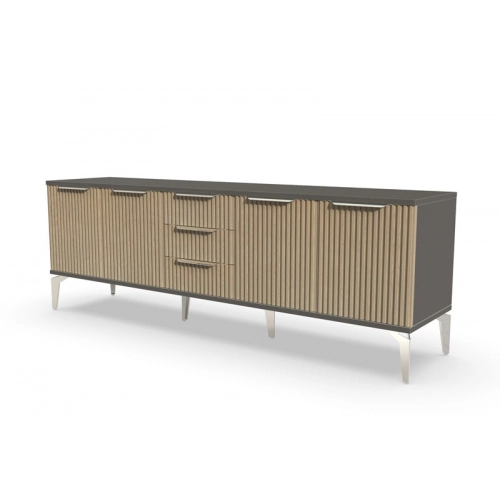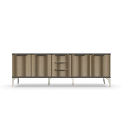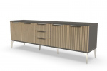 Тумба под телевизор длинная "Рейн" от фабрики Geona - это современное и практичное решение для вашей гостиной или гостевой комнаты. Она имеет несколько выдвижных ящиков и открытые полки для хранения различных предметов, включая телевизионную технику и аксессуары.