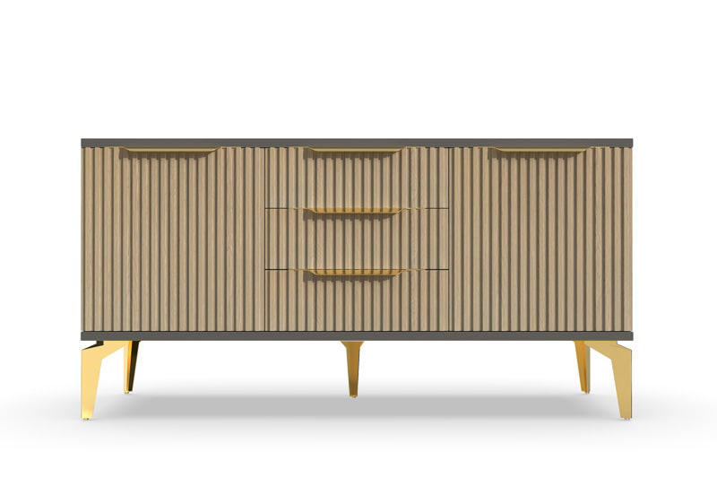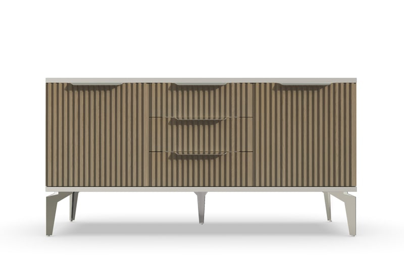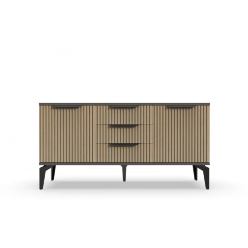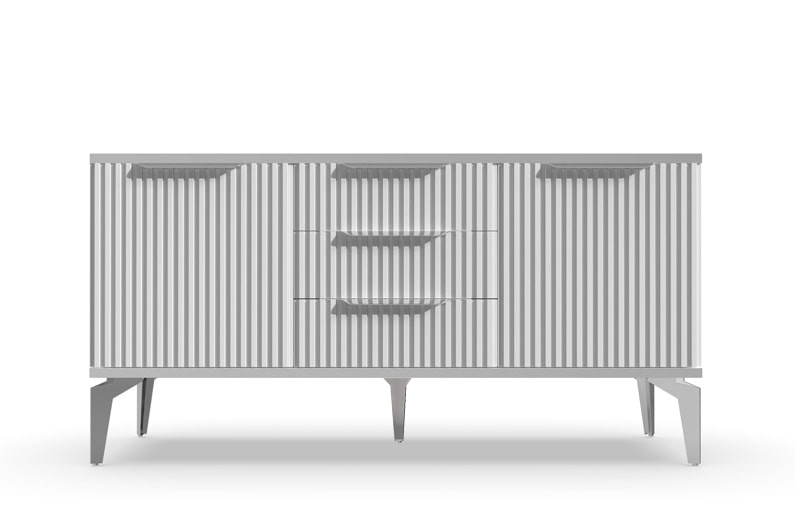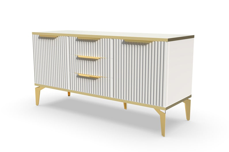 Тумба под ТВ Рейн от фабрики Geona - это красивое и функциональное решение для вашей гостиной. Её особенностью являются рифлёные поверхности, которые создают не только эффектный визуальный эффект, но и приятные тактильные ощущения.