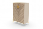 Отделка комода высокого "Шале" в диагональном направлении текстуры создает ощущение глубины и динамики. Эта техника декорирования мебели делает его уникальным и привлекательным, а также позволяет гармонично вписаться в разные стили интерьера. Комод высокий "Шале" будет идеально смотреться в спальне или гостиной, добавляя в них изысканность и элегантность.