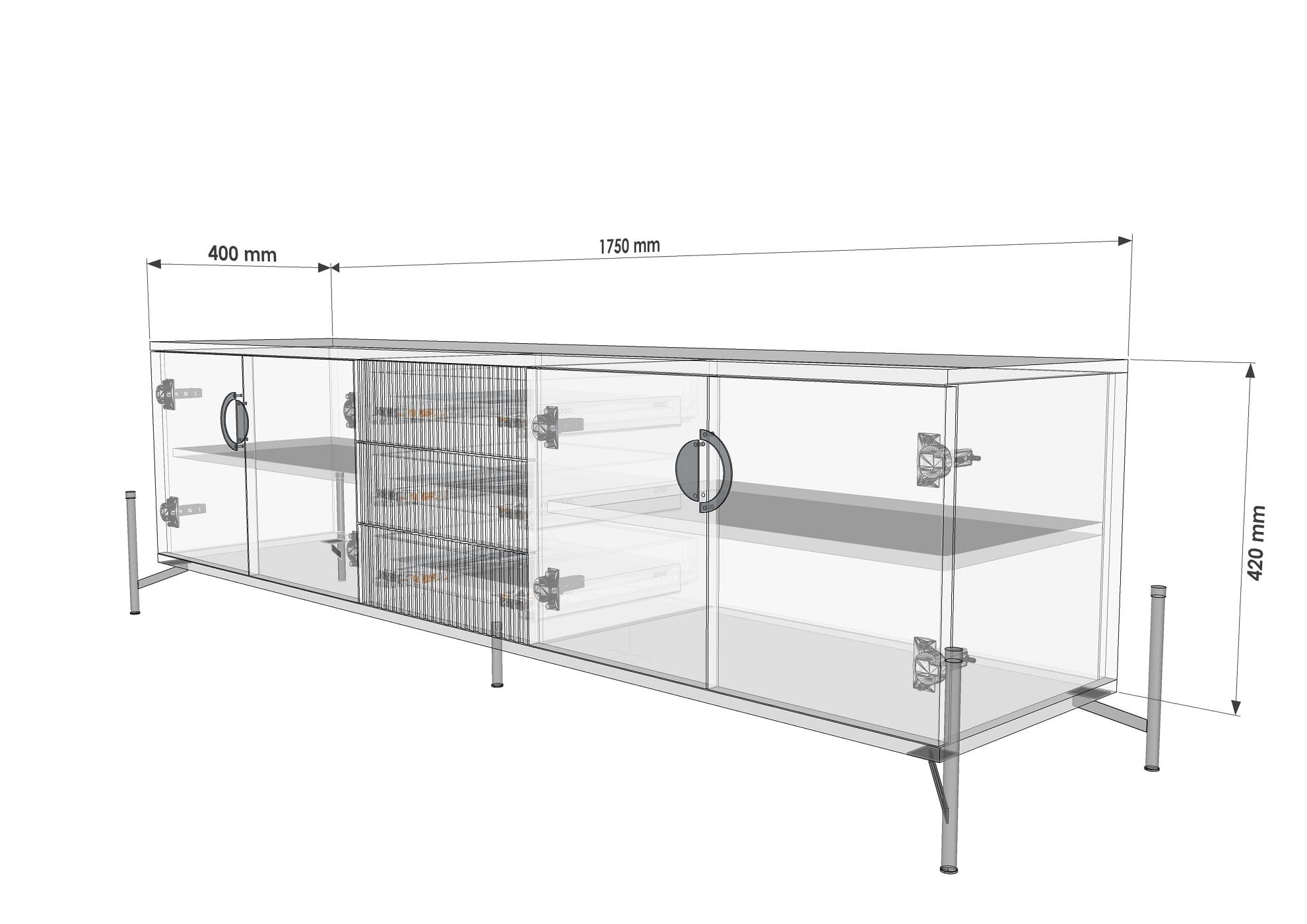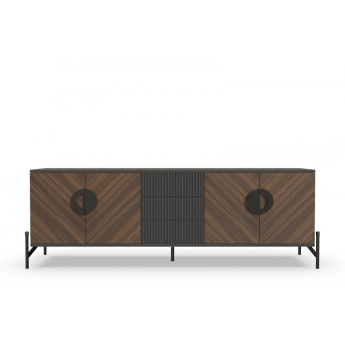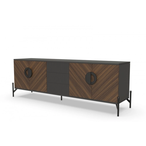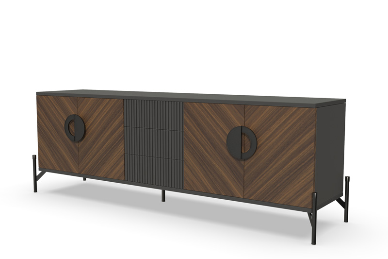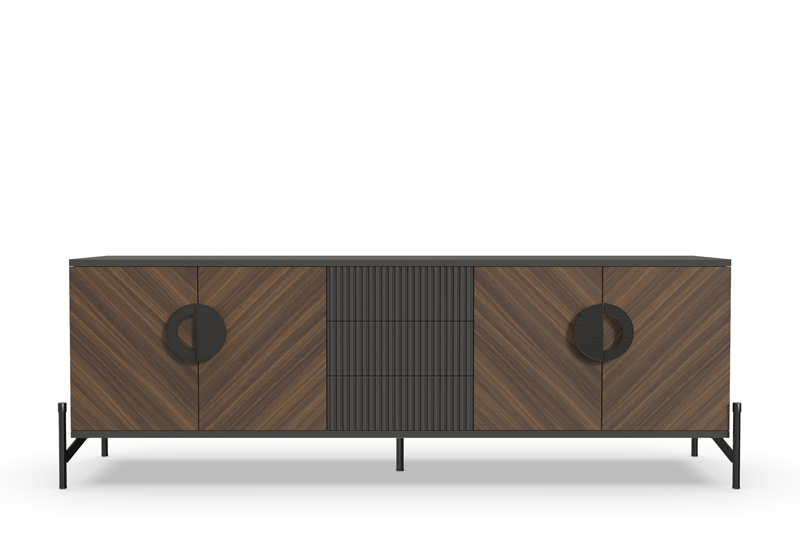 Отделка в диагональном направлении текстуры придает ТВ-тумбе неповторимый стиль и элегантность. Эта отделка создает гармоничное сочетание с различными интерьерами, добавляя им индивидуальности и уникальности.