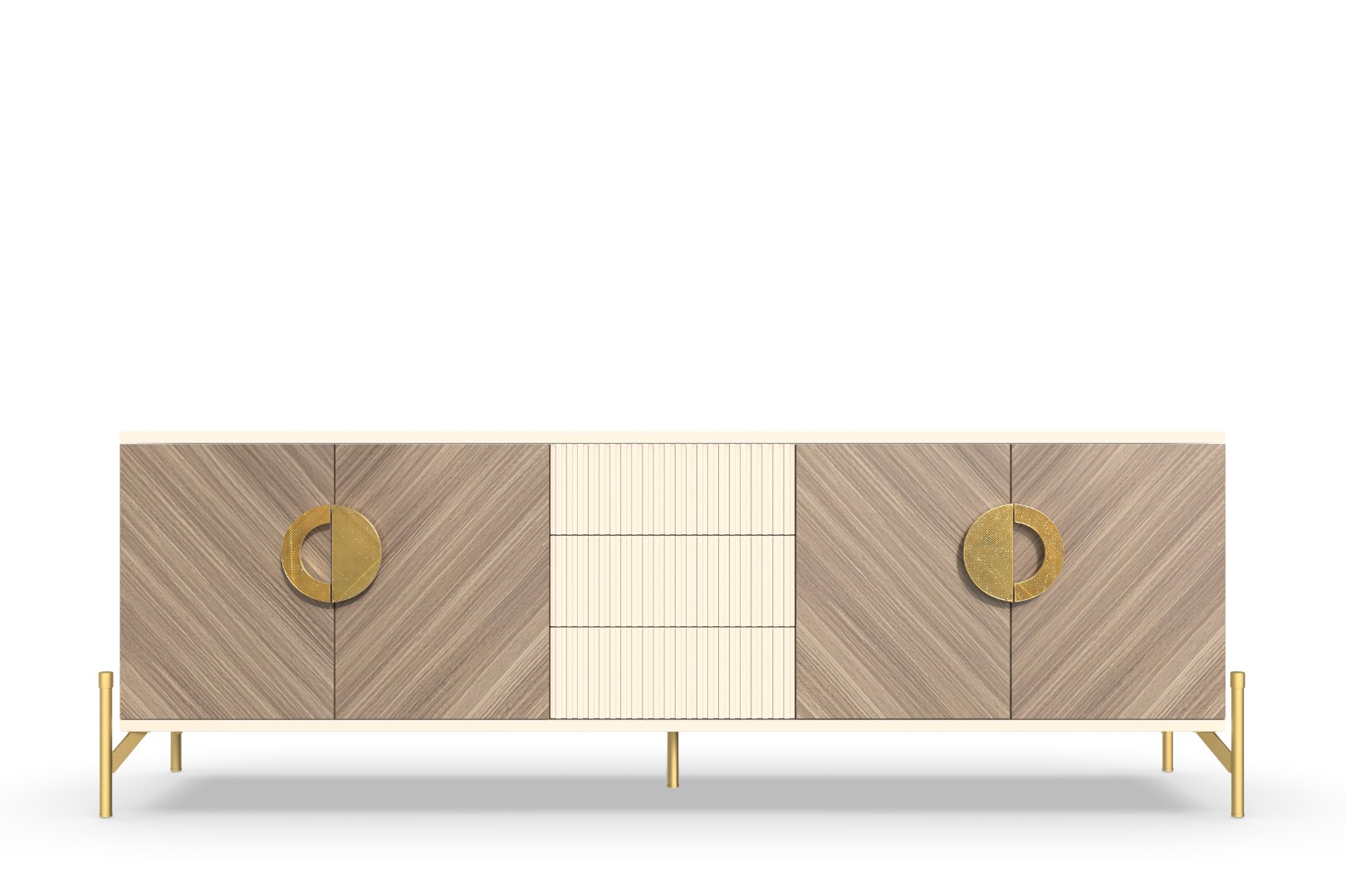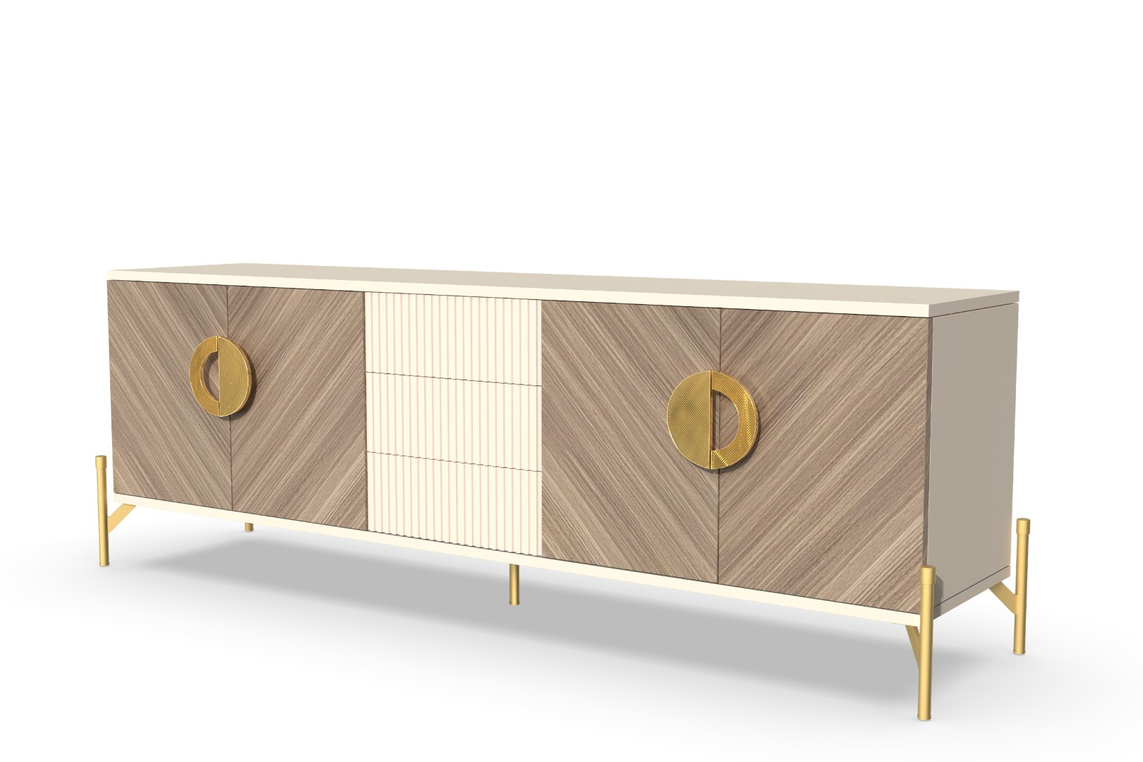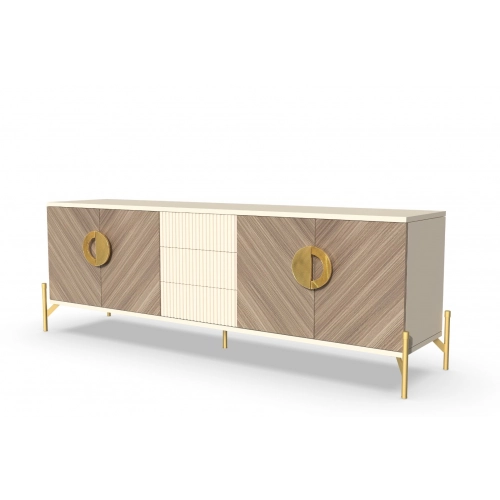 Тумба под ТВ длинная Шале от фабрики Geona - это идеальное решение для создания стильного и уютного интерьера вашей гостиной. Эта тумба имеет эффектную отделку, которая создает уникальную текстуру в диагональном направлении.