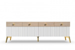 Тумба под ТВ Темпо от фабрики Geona - это красивое и практичное решение для тех, кто ценит качество и удобство. Она выполнена с использованием рифлёных поверхностей в двух цветах - Дуб Галифакс натур. 8177 и Софт блэк.