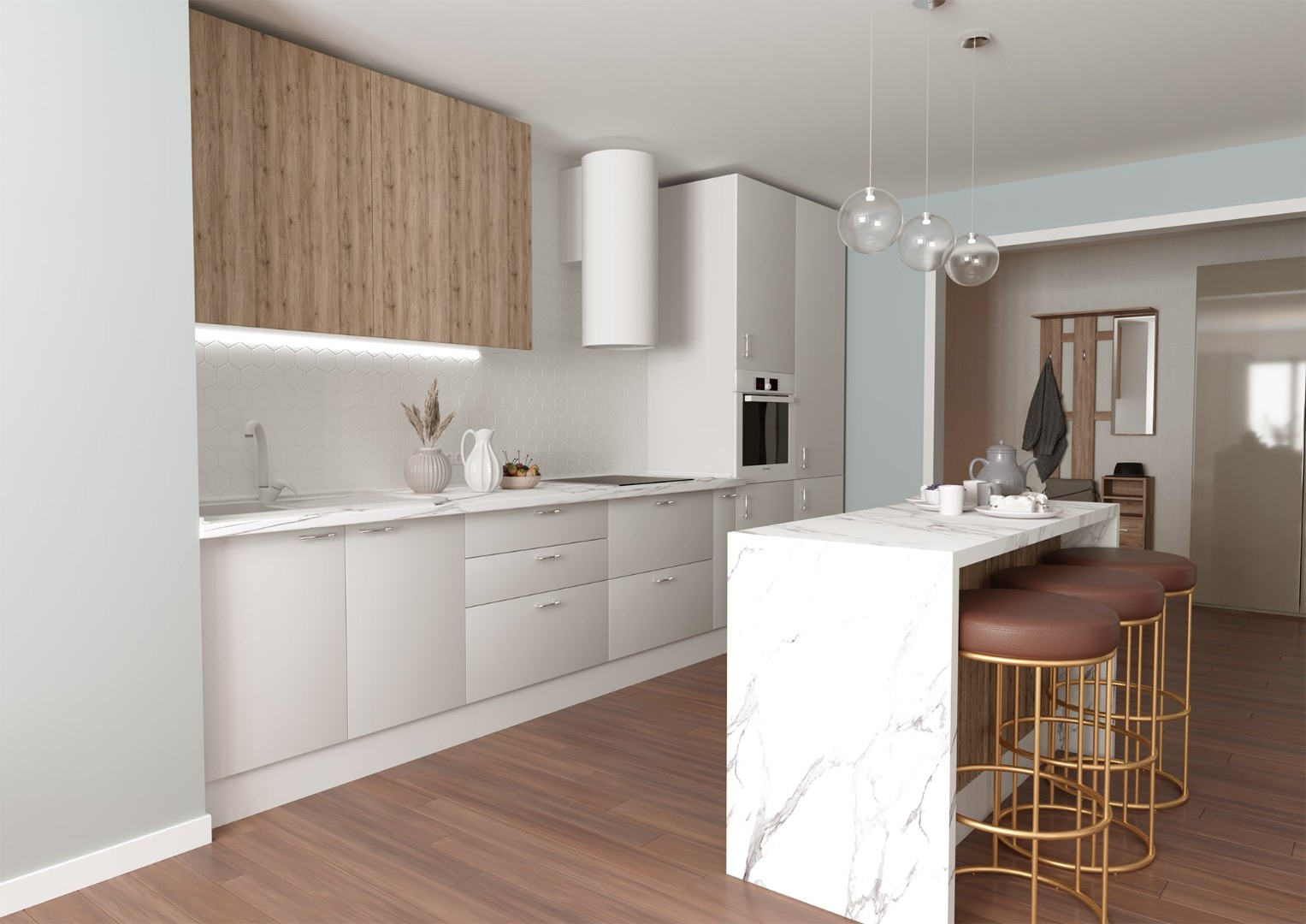 Коллекция "Гладь 1" предлагает вам разнообразие стилей, отделок и компонентов, позволяющих вам создать кухонный гарнитур, отвечающий вашим вкусам и потребностям. Гладкие фасады, современные ручки и умные решения для хранения помогут вам создать эстетически привлекательное и функциональное пространство на вашей кухне.