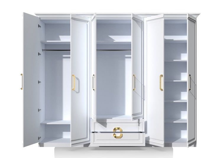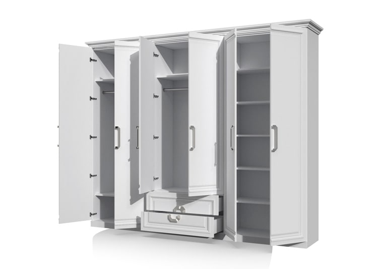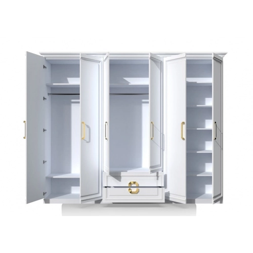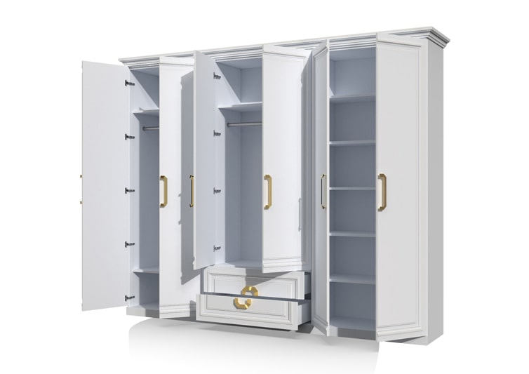Основным преимуществом шкафа "Лозанна" являются его ящики, которые обеспечивают удобство и дополнительное пространство для хранения ваших вещей. Шесть створок позволяют организовать хранение ваших вещей легко и удобно. Ящики легко выдвигаются, что обеспечивает удобный доступ к вашим вещам, а также упорядочивает их хранение.